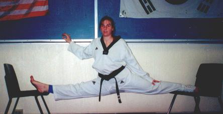 Mr. Kontrovitz demonstrates flying side kick. Unfortunately,