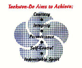 The five tenets of Taekwondo: courtesy, integrity, perseverance,