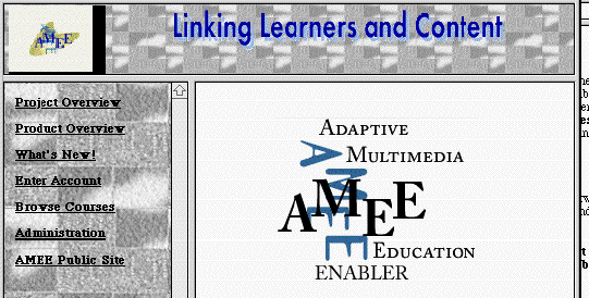 The Adaptive Multimedia Education Enabler, or AMEE, is a family of products that will move us significantly closer to the vision of open, integrated access to distance learning opportunities. This project is an exciting challenge for learners, communities, course providers and technology developers that demonstrates the value of the information highway as an educational thoroughfare.