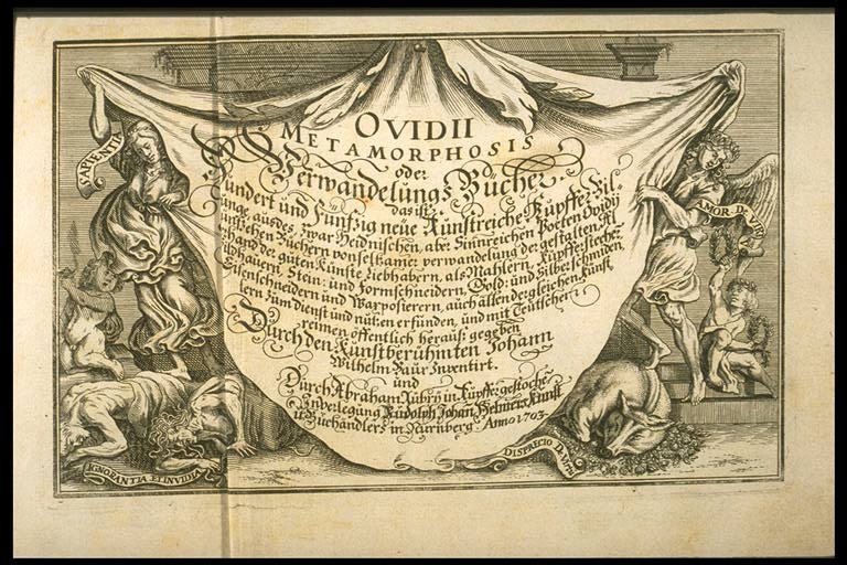 Artist Johann Whilhelm Baur (1600-1640) designed 151 illustrations for the Metamorphoses. They first appeared in Vienna possibly as early as 1639 and were reissued several times. This edition, printed at Nuremberg in 1703 includes a title page from an earlier edition dated 1687.