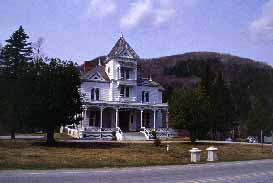 This effort was quite successful in drawing more wealthy visitors to Vermont, whether native sons or not. In some cases, they would buy up several neighboring properties and create an estate or gentleman's farm, such as Shard Villa in Salisbury (1872) or Shelburne Farm in Shelburne (begun mid-1880s). Others, like Henry Copeland in Middletown Springs, built smaller estates in villages. Many funded civic improvements in the neighboring villages, such as Henry R.C. Watson, who founded the Brandon Town Fair, or Dr. Henry E. Walker, who donated money for a new library in Pittsford. This trend for the most part began in the early 1890's. John Bowman, a local "native son," anticipated this trend in the early 1880's. Although his motive for establishing his estate was more macabre than simple tourism, Bowman's Laurel Hall fits the pattern of a Victorian country estate. It lies on the edge of Cuttingsville, a small village in Shrewsbury. The house contained all the luxuries of home for a wealthy industrialist of the period, and the outbuildings and pleasure grounds contributed to the comfort. Bowman funded extensive improvements to the village cemetery, in part, no doubt, to smooth concerns over his elaborate mausoleum, but also in the spirit of philanthropy that would surface later in many of the other owners of seasonal estates.