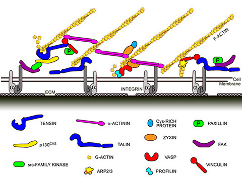 Schematic of focal adhesion proteins (modified from original image courtesy of K. Burridge, UNC-Chapel Hill)