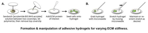 Schematic for fabrication of polyacrylamide hydrogels for investigation cellular mechanotransduction