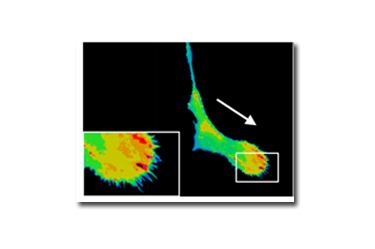 FRET image of PKA activity within the leading edge of an ovarian cancer cell invading through a 3D matrix.