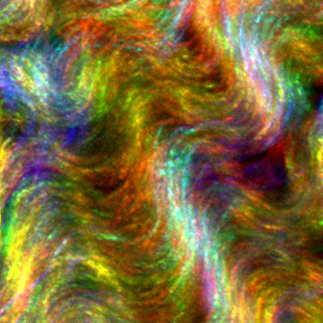 Human dermal fibroblasts treated with PDGF for 10 min (green=actin; red=VASP; blue=vinculin)