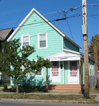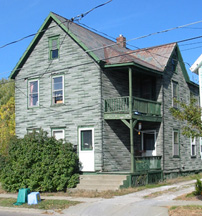 The 1869 Beers map list C. J. Alger at this site. According to the 1869 Directory, Alger was a lawyer in Burlington. As his name appears on many lots in the North End, it is likely that he purchased many lots for either resale or lease. The 1881 Directory lists an Uber Poreau and family at this address. Looking back at the 1869 Directory, there is a listing for a Hubert Poro on "North Bend between Rose and Lafountain sts." It is likely that this is the same family, simply misspelled in the earlier directory. The 1890 Hopkins map lists a Mrs. C. Poreau at this location, undoubtedly the same family. It is difficult to tell what the original state of this building was, as there have been extensive changes, including the asphalt shingles. The central chimney may allude to the age of the original structure, which is well hidden in the current condition.