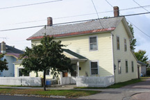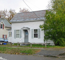 Current aerial maps show the exact same footings as seen on the 1869 Beers map. Despite a large one story rear addition, the central massing of the building remains clearly defined. Here again is the first story gable front bow window that has been seen so frequently in this area. The 1881 Directory listed Michael McMahon at this exact address, and the 1869 Directory stated that M. McMahon, an employee of the Rutland and Burlington Railroad live on "Champlain St. between North St. and North Bend." The 1890 Hopkins map shows M. McMahon at this location as well.