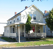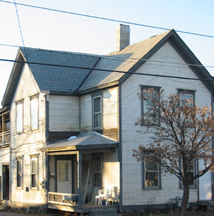 The 1869 Beers Map clearly shows a building on this location. Current aerial maps show that this structure shares almost identical footings. However, the earliest evidence of an occupant here comes in 1881 when the directory lists Barney Gunning at this address. Mr. Gunning is still here in 1890 when he is listed on the Hopkins map in this location. The building's central massing is clearly defined despite a large rear addition and porch on the front and north sides.