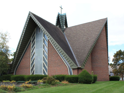 Organized Catholic services first took place at the University of Vermont in 1906 when, under the leadership of Reverend William P. Crosby, the Catholic Club formed.1 The club organized to “promote the religious and literary education of its members,” and contained roughly fifty members, thought club members were confident this number would quickly grow.2 The Catholic Club changed its name to the Newman Club in 1921, a move reflected across many Catholic student organizations in non-sectarian colleges which rechristened themselves as Newman Clubs during the 1920s.3 The Newman Club of the University of Vermont took part in fraternal gatherings and social events with Burlington groups, hosted campus events with guest lecturers, and generally provided Catholic students a community in which they could celebrate and practice their faith.4 The club held its meetings at different locations around campus and in the greater Burlington area including Cathedral High School. In 1951 the Arnold House at 118 Pearl Street served as the club’s headquarters, however the club still lacked a dedicated worship space for the performance of rituals.5 This situation changed in 1962 when the University of Vermont decided to make available a parcel of land on the Redstone Campus for religious denominations to lease and construct faith buildings upon.6 Within a year, the Catholic Diocese of Burlington indicated its interest in the land and commenced development of the Newman Catholic Center.7