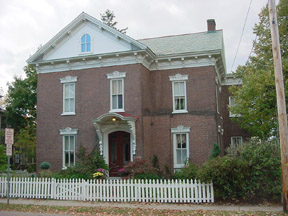 South Union Street was laid in two stages. The oldest part of the street was begun sometime around ca. 1840, and ran from Main Street south to Shelbourne St., which was considered the residential section of the town.[1] The years of 1863-1873 were highly profitable for most businessmen and budding industrialists. There was little expansion in those years because of the great loss in manpower inflicted by the war.[2] South Union was an exception. There were elegant Italianate and French Second Empire homes built during this decade, including the Burritt house (#172) and the Hilas Rohy house (#217) and the Seymour House (#347).[3] Sometime during the Civil War the second segment of South Union was completed, running from Main Street to Pearl.[4] This event had previously been let down by the ravine that cut across the line of Union at about College St. The relocation of the railroad to the Intervale allowed the ravine to be filled, and valuable real estate was created, but barely any development occurred before 1890.[5]