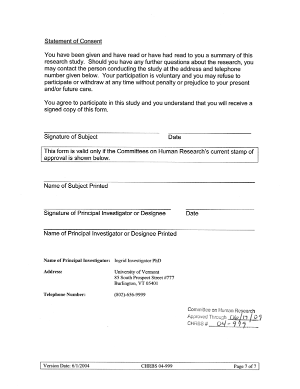 *The version and expiration date on the consent document must be verified every time a consent document is presented to a subject.*