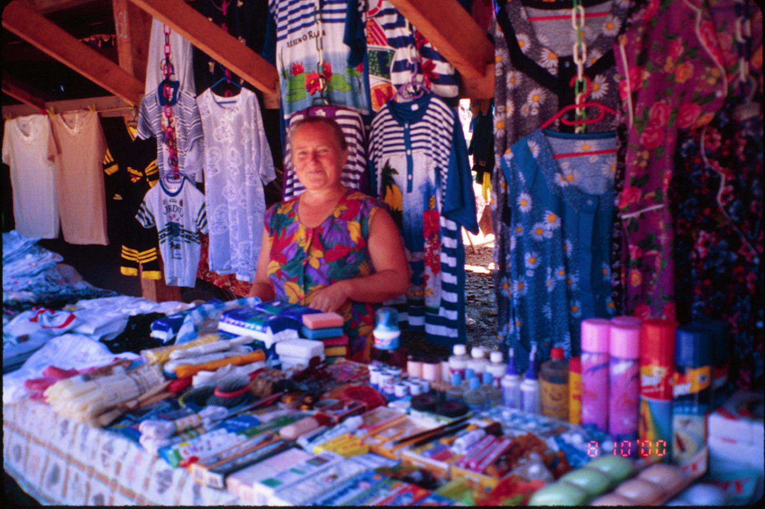 Since the breakup of the Soviet Union in 1991, the Ukrainian economic system has been undergoing massive, and often disorganized, restructuring. For most Ukrainians, this has meant changing their workplace, profession, or even life goals. For the past several years, beginning with a project in summer 2000, I have been doing research on Ukrainian markets, called "bazary" (bazaars), focused on markets in the Zakarpattja region of Ukraine. Although somewhat similar to an American flea market, the bazar occupies a very different place in the social and economic landscape of Ukraine. Even now, when more retail stores have opened in Zakarpattja towns, the bazar is still the place most people go to make purchases both large and small - everything from mayonnaise and diapers to prom dresses, wedding rings, and televisions can be, and are, bought at local or regional bazary.