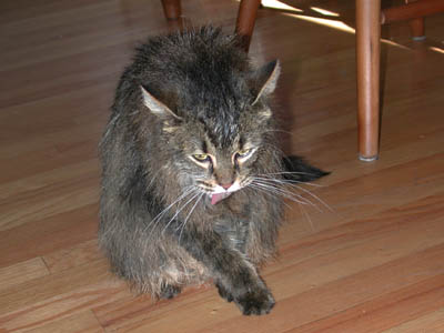 They held me on a chair near the fire and brushed me. They finally gave up on their attempts to groom me and let me go. I knew I had a long day of bathing ahead of me. I started licking...