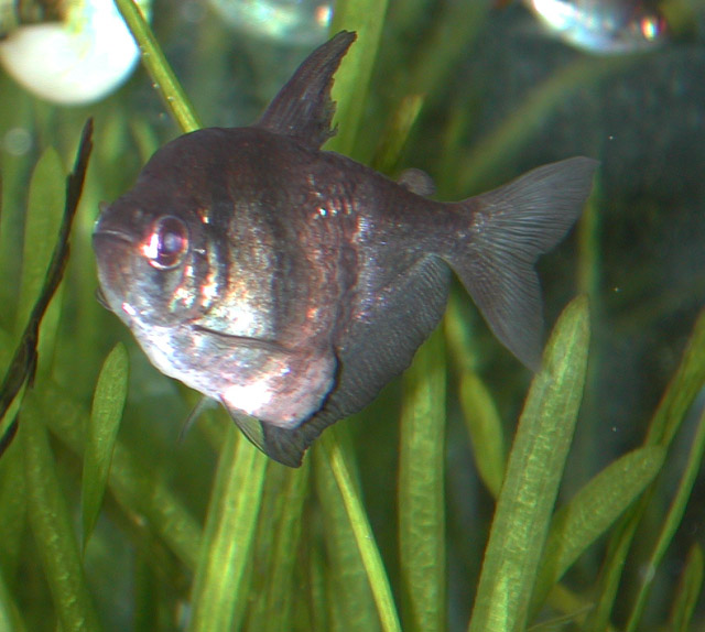 The rainbowfish are sexually mature, and are often seen paired off, shuddering together in the early morning. I haven't collected any eggs, and probably won't until I give the fish their own tank. Any eggs they produce now will be gobbled up by the barbs, Botia and other fish.