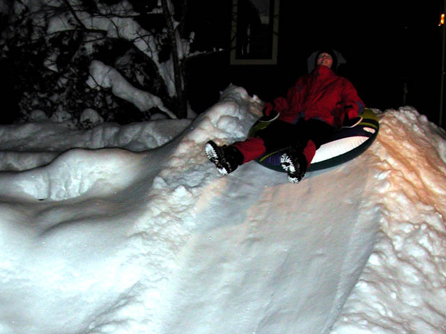 Click on any image to see a larger picture. Write to me if you want to see the full size image (2048x1536). The bird pictures were taken with a zoom lens, and all of the pictures are compressed for the web, so excuse the graininess. Most of the sledding shots were taken in the dark. :-)