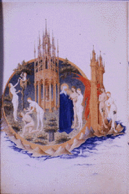 God presents Eve to Adam. 15th C. Illumination. Cambridge, Fitzwilliam Museum, ms. 251, f. 16. Meiss, Millard. French Painting in the Time of Jean de Berry: The Boucicaut Master. London: Phaidon, 1968. Pl. 457