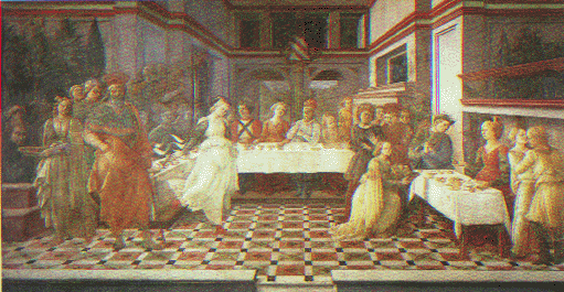 Fra Lippo Lippi. Scenes from the Life of John the Baptist: Herod's Banquet. Prato, Cathedral. (Gloria Fossi. Felippo Lippi. Florence: Scala, 1990. pl. 65).