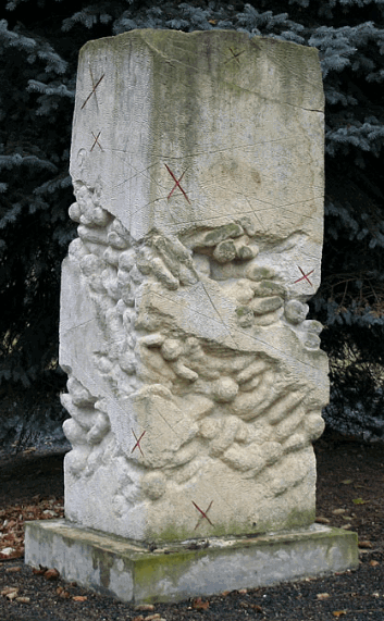 cemetery in 1990. It is conceived as a crosscut through a mass-grave (as