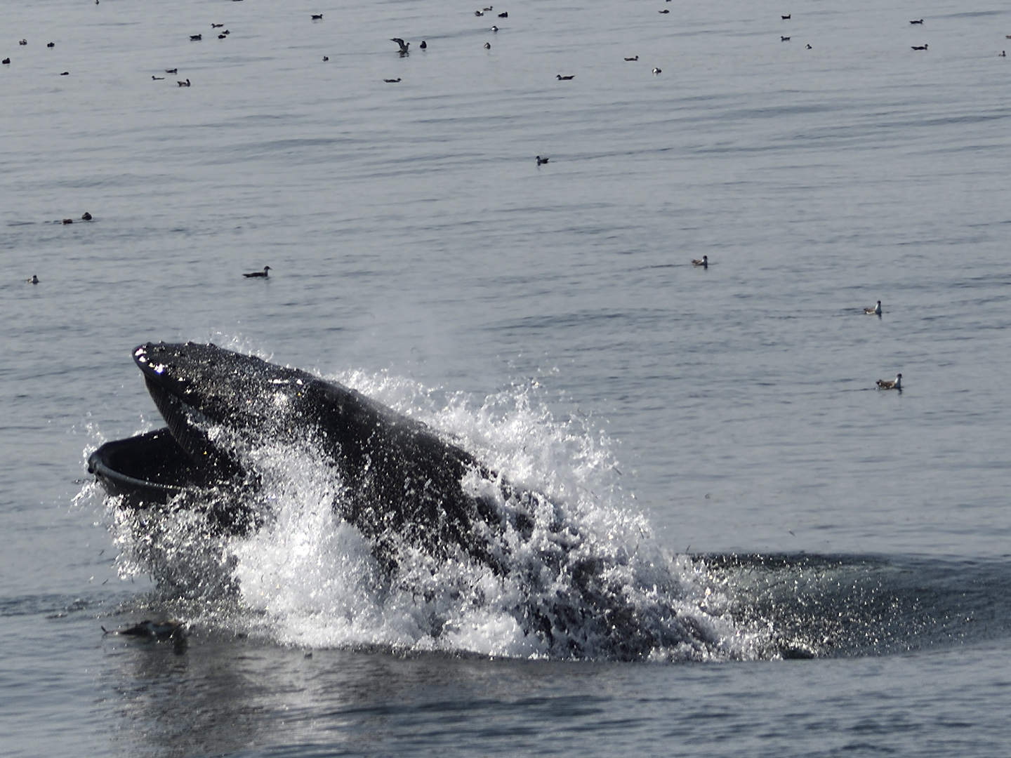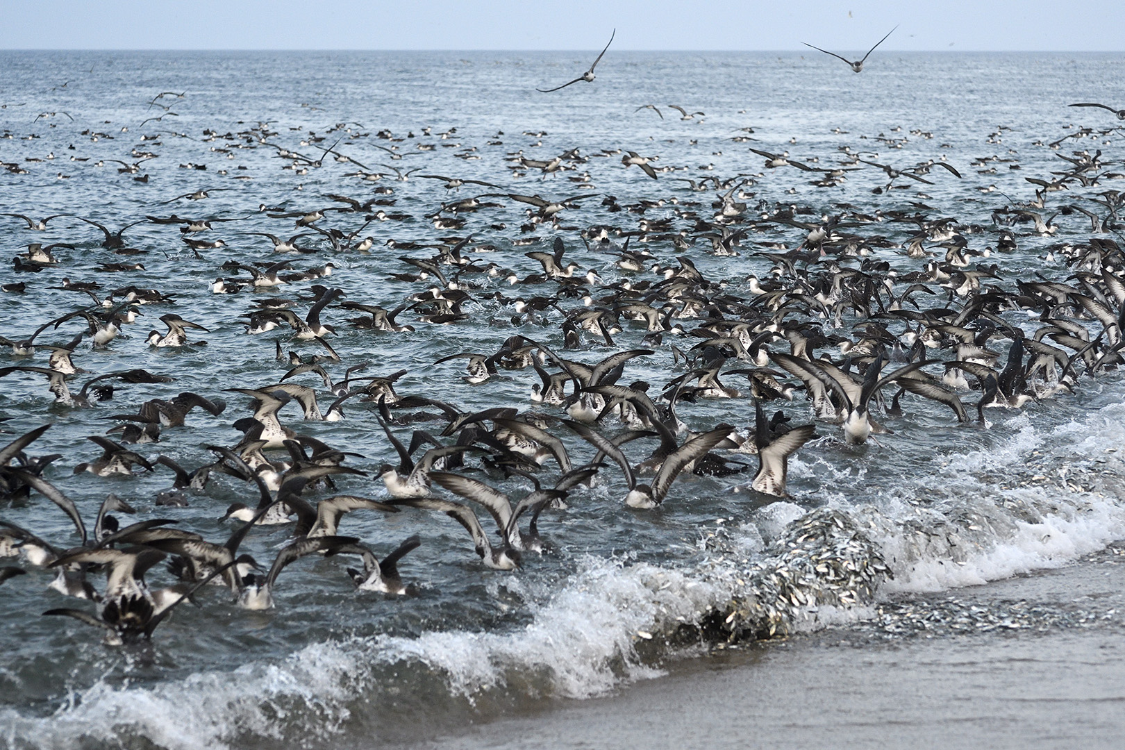 Shearwater raft feeding on huge baitball