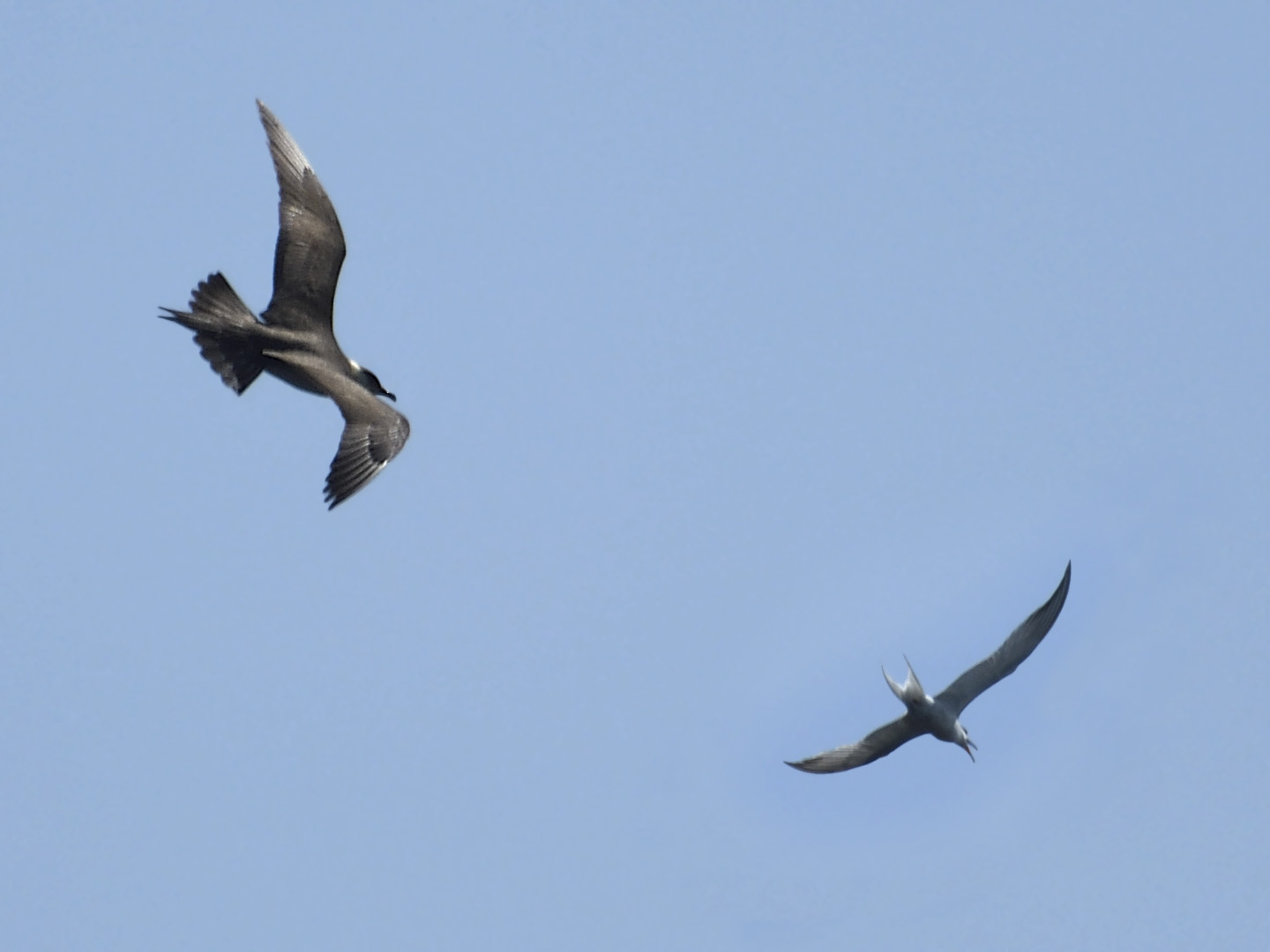 Parasitic jaeger chasing tern