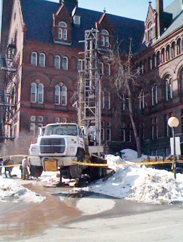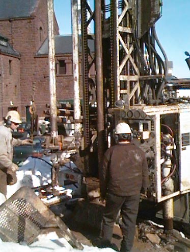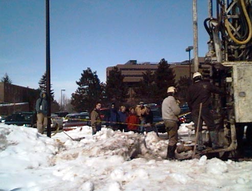 The next two wells on the campus well field go in on a fine April day that still looks like winter.