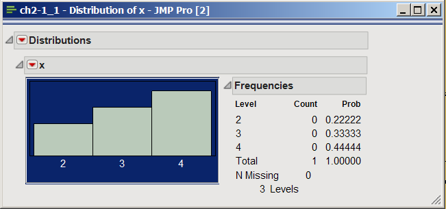 To create the Probability Histogram click the Analyze menu and select Distribution. This gives the dialog box below.