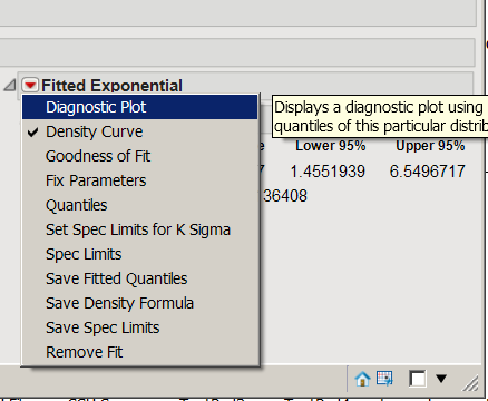 Click on the red triangle next to Fitted Exponential and select "Diagnostic Plot"