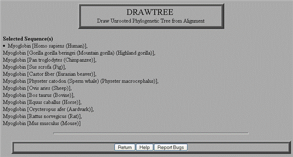 the "RETURN" button to go back to the Biology Workbench Alignment Tools