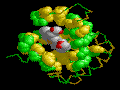 stereo space-filling view of the Porphyrin Ring in the Myoglobin binding