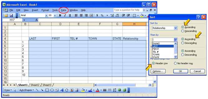 On the "DATA" scroll down menu, choose "SORT". A