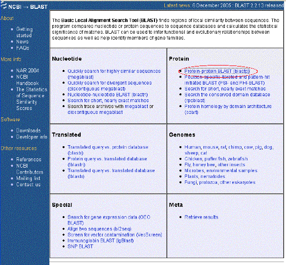 page, click on “BLASTP”, as shown in the thumbnail to the left. |