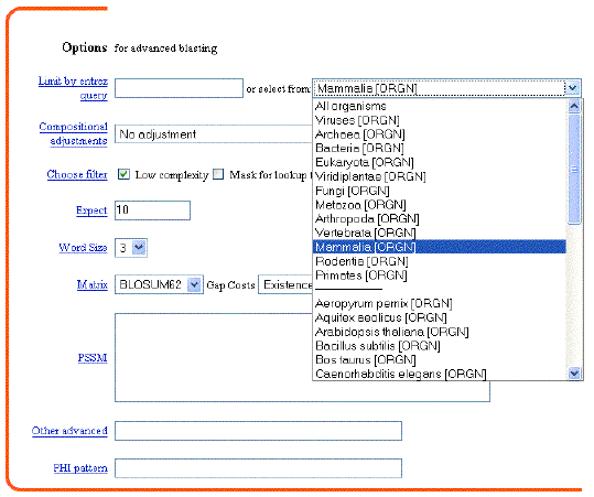 for matches in all organisms. Often this is unnecessary, and only lengthens