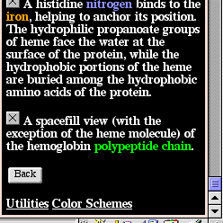 At the bottom of the HEMOGLOBIN & HEME tutorial is a "Back"
